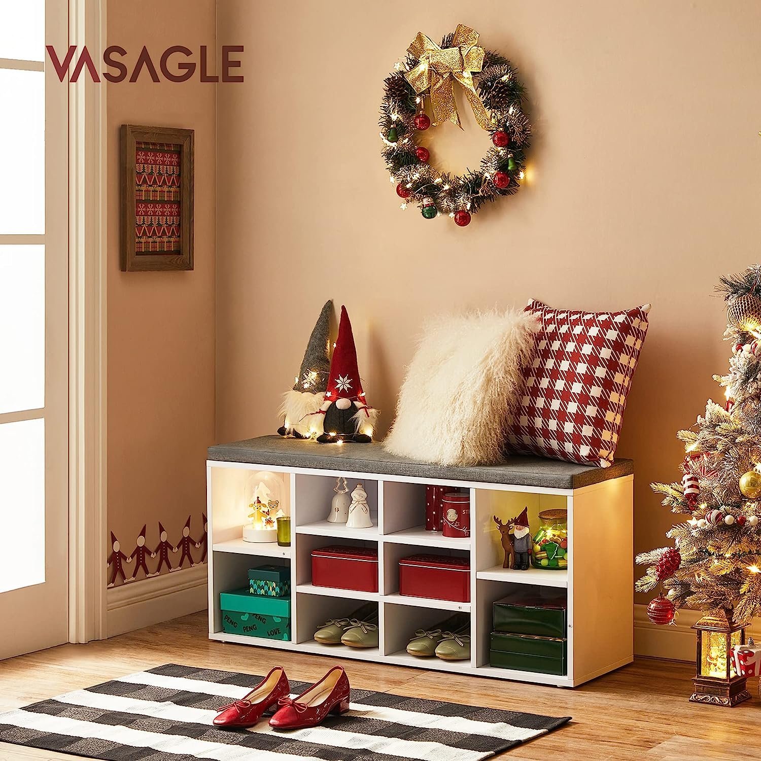 VASAGLE Banca pentru hol cu suport pentru pantofi, 10 compartimente, cu perna, 104x48x30cm, alb