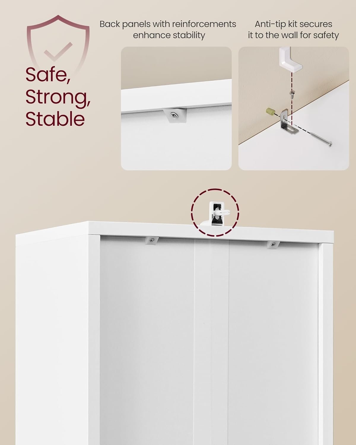 VASAGLE Biblioteca ingusta cu 6 niveluri si dulap inchis, rafturi reglabile, 24x32x175 cm, alb