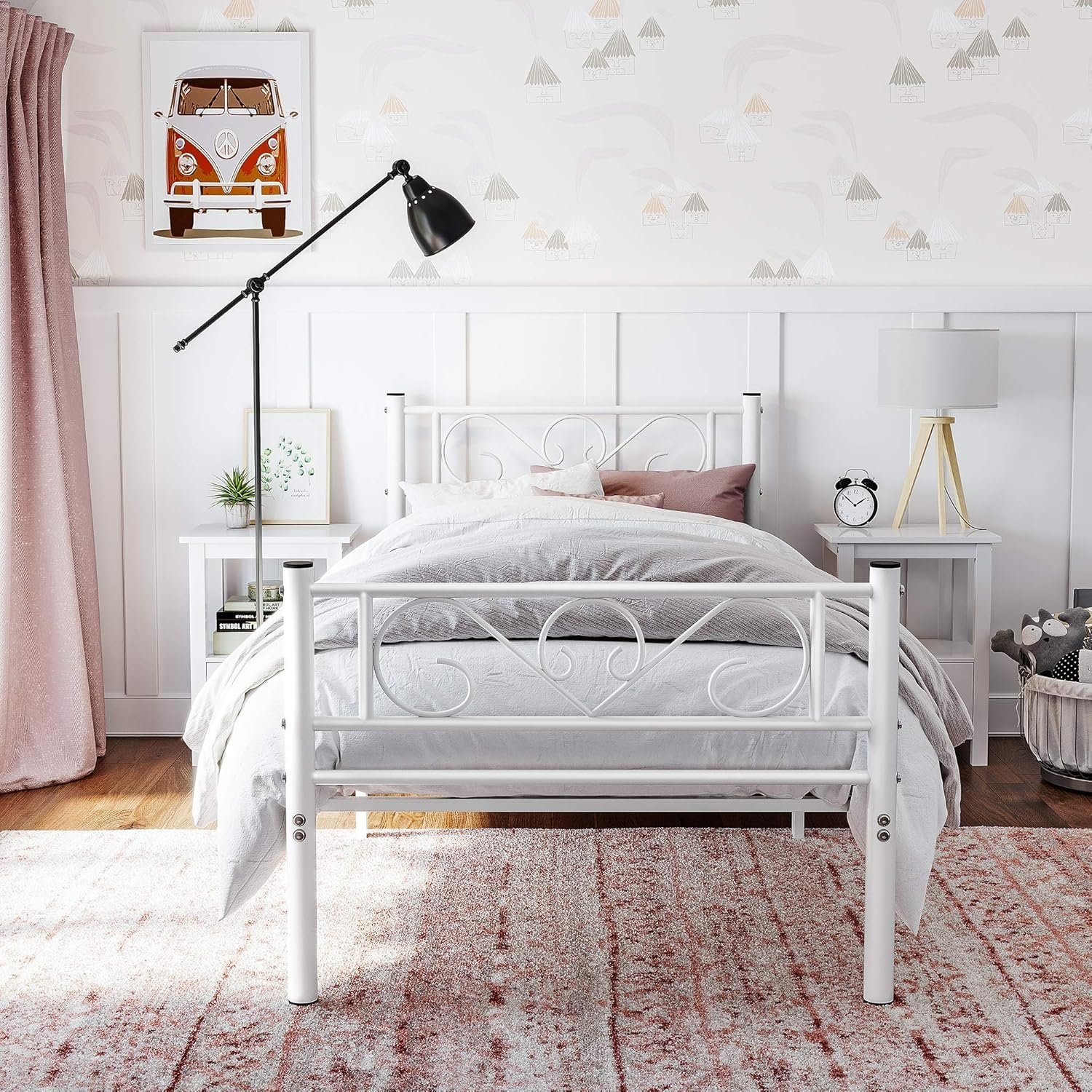 Gata cu insomnia – visele dulci asteapta: Diferenta dintre o noapte nedormita si o noapte de vise dulci se datoreaza adesea cadrului patului si saltelei pe care le purtati toata noaptea. Cum iti faci patul este cum iti place! Culoare: Alb Material: Metal acoperit cu pulbere Dimensiuni: 198 x 91,8 x 86,4 cm (L x l x i). Capacitate de incarcare statica: 150 kg Note: Nu lasati copiii sa isi bage capul in spatiile dintre tevile metalice. Asigurati-va ca toate piesele si suruburile sunt bine fixate inainte de utilizare. Salteaua nu este inclusa. Despre acest articol Grinzile de sustinere de inalta calitate si cele 6 picioare metalice durabile cu conectori metalici in forma de U confera acestui cadru de pat o stabilitate ridicata si o capacitate de incarcare de 150 kg – fara oscilatii, fara zgomot enervant.Cu o distanta de 26 cm intre podea si grinda de sustinere, va puteti depozita cu usurinta cutiile de depozitare dedesubt; nu va faceti griji cu privire la curatare, aspiratorul robot poate trece prin.Designul simplu si culoarea clasica creeaza un cadru de pat elegant care se potriveste cu numeroase stiluri; puneti o perna in spatele dvs. in timp ce cititi si sprijiniti-va pe ea – Tastatura inalta permite un confort sporit.Fiecare picior al acestei rame de pat este echipat cu o placuta pentru picioare pentru a reduce zgomotul in timpul miscarii si pentru a proteja podeaua de zgarieturi. Datorita instructiunilor clare si a pieselor etichetate, puteti asambla cu usurinta acest cadru de pat single.
