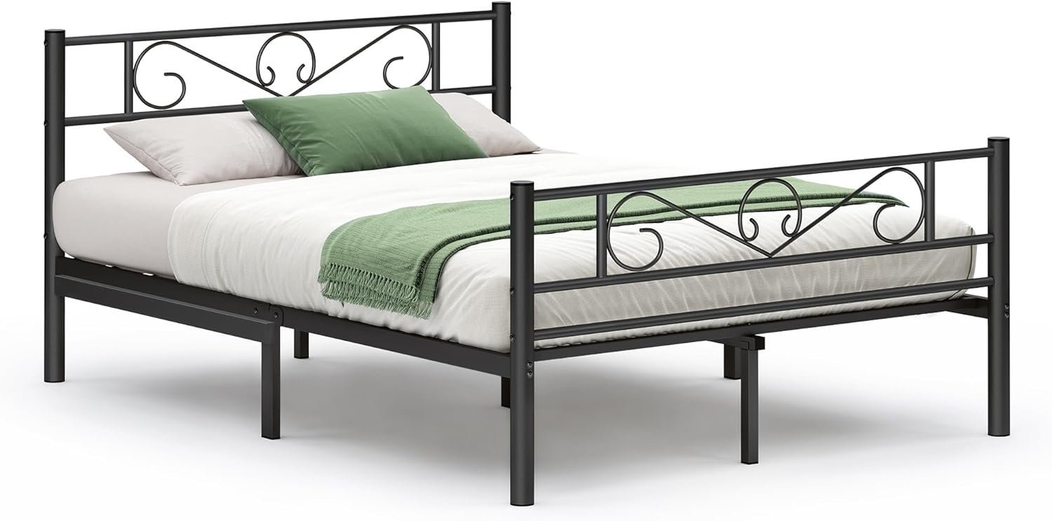 Dimensiune 140 x 190 cmDimensiuni produs 198L x 141.8W x 86.4H centimetriCaracteristica speciala RobustCuloare negruTip finisaj Acoperit cu pulbereMaterial Otel aliat, MetalStil ModernGreutate maxima recomandata 250 KilogrameGreutatea articolului 19.8 Kilograme Include doar cadru de pat Robust si stabil: Barele de sustinere de inalta calitate si 9 picioare metalice robuste cu conectori metalici in forma de U inzestreaza acest cadru de pat dublu cu o mare stabilitate si o sarcina maxima de 250 kg – fara oscilatii si zgomote enervante Spatiu amplu sub pat pentru depozitare: Cu barele de sustinere la 26 cm de podea, va puteti depozita cutiile de depozitare sub cadrul patului, iar un aspirator robot poate trece prin el pentru o curatare usoara Elegant si confortabil: Un design minimalist si culoarea neagra clasica creeaza o rama de pat sic care se potriveste usor cu diverse decoruri de acasa; asezati o perna in spatele spatelui si sprijiniti-va de ea in timp ce cititi – capul de pat inalt permite mai mult confort Placute pentru picioare incluse: Fiecare picior al acestei rame de pat metalice rezistente este prevazut cu o placuta pentru picioare pentru a reduce zgomotul in timpul miscarii si pentru a proteja podeaua de zgarieturi Asamblare usoara: Datorita instructiunilor clare si pieselor etichetate, puteti asambla acest cadru de pat metalic dublu fara efort