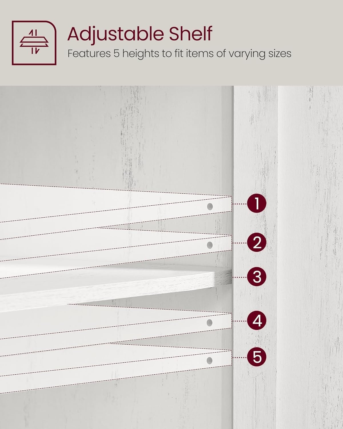 Specification: VASAGLE Comoda cu sertar si dulap cu raft reglabil, stil country, 80x40x80 cm, alb rustic