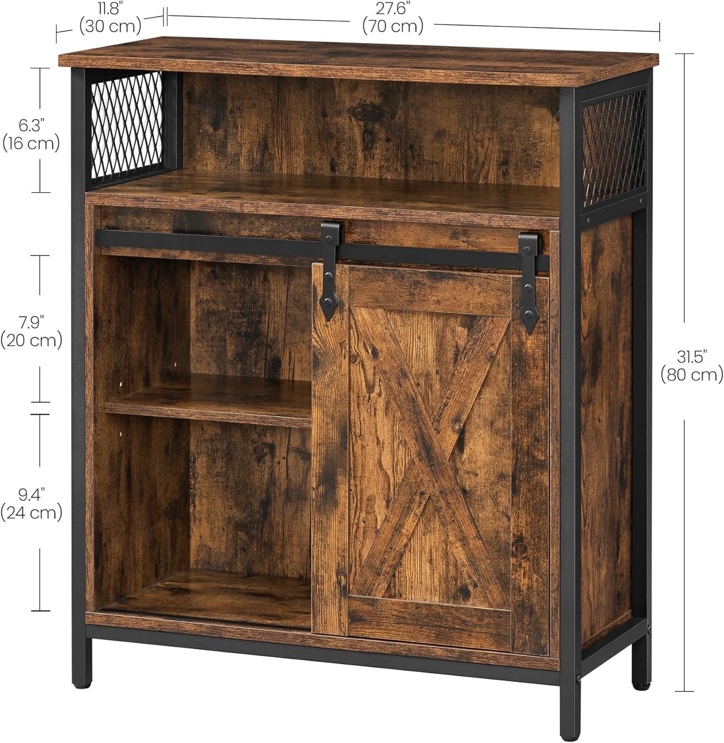 Specification: VASAGLE Comoda depozitare cu usa glisanta tip hambar, 70x30x80 cm, maro rustic