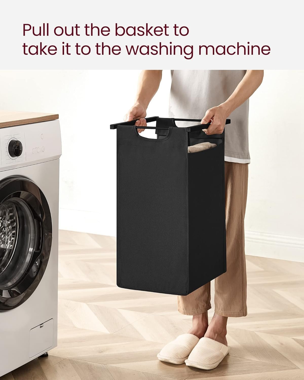 Specification: VASAGLE Cos de rufe, 2 compartimente, saci de rufe detasabili, raft, cadru metalic, 2x46L, 73x33x72 cm, maro rustic si negru
