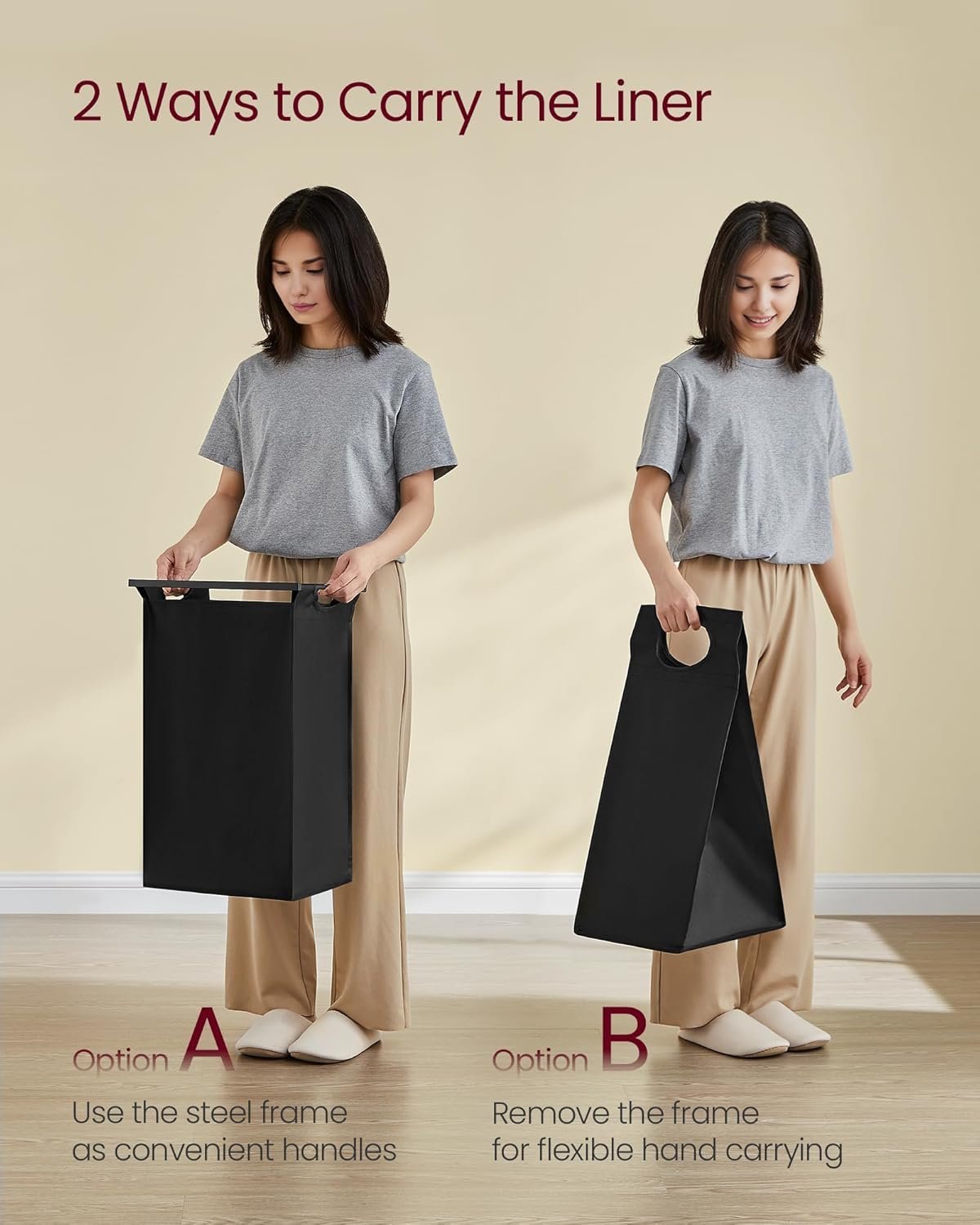Specification: VASAGLE Cos de rufe cu 3 saci detasabili, 3×40 litri, 2 rafturi, structura metalica, stil industrial, 92x33x92 cm, maro rustic