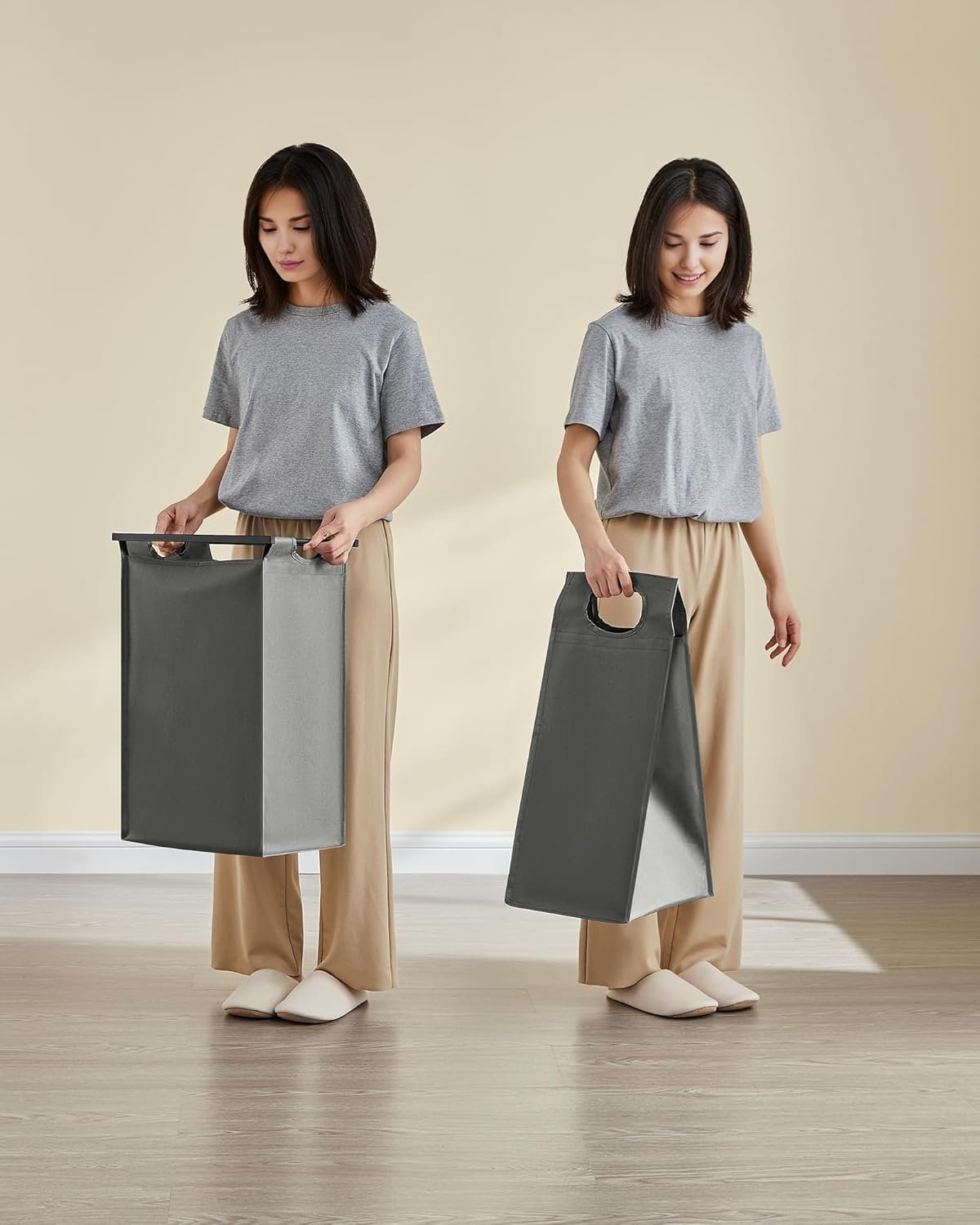 Specification: VASAGLE Cos rufe 4x40L, saci detasabili, raft superior si cadru metalic, 116x33x72 cm, negru si gri