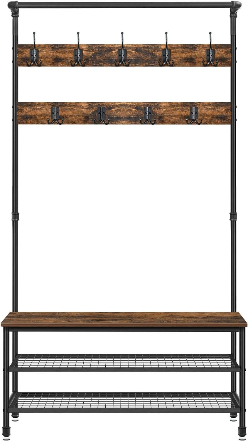 Specification: VASAGLE Cuier pentru haine cu 9 carlige si suport pentru pantofi, stil industrial, cadru din otel, 100x42x182 cm