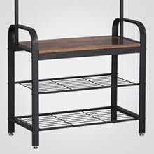 Specification: VASAGLE Cuier pentru haine, cu banc depozitare pantofi, 9 carlige detasabile, sina pentru haine, 34x77x183cm, industrial, maro rustic si negru