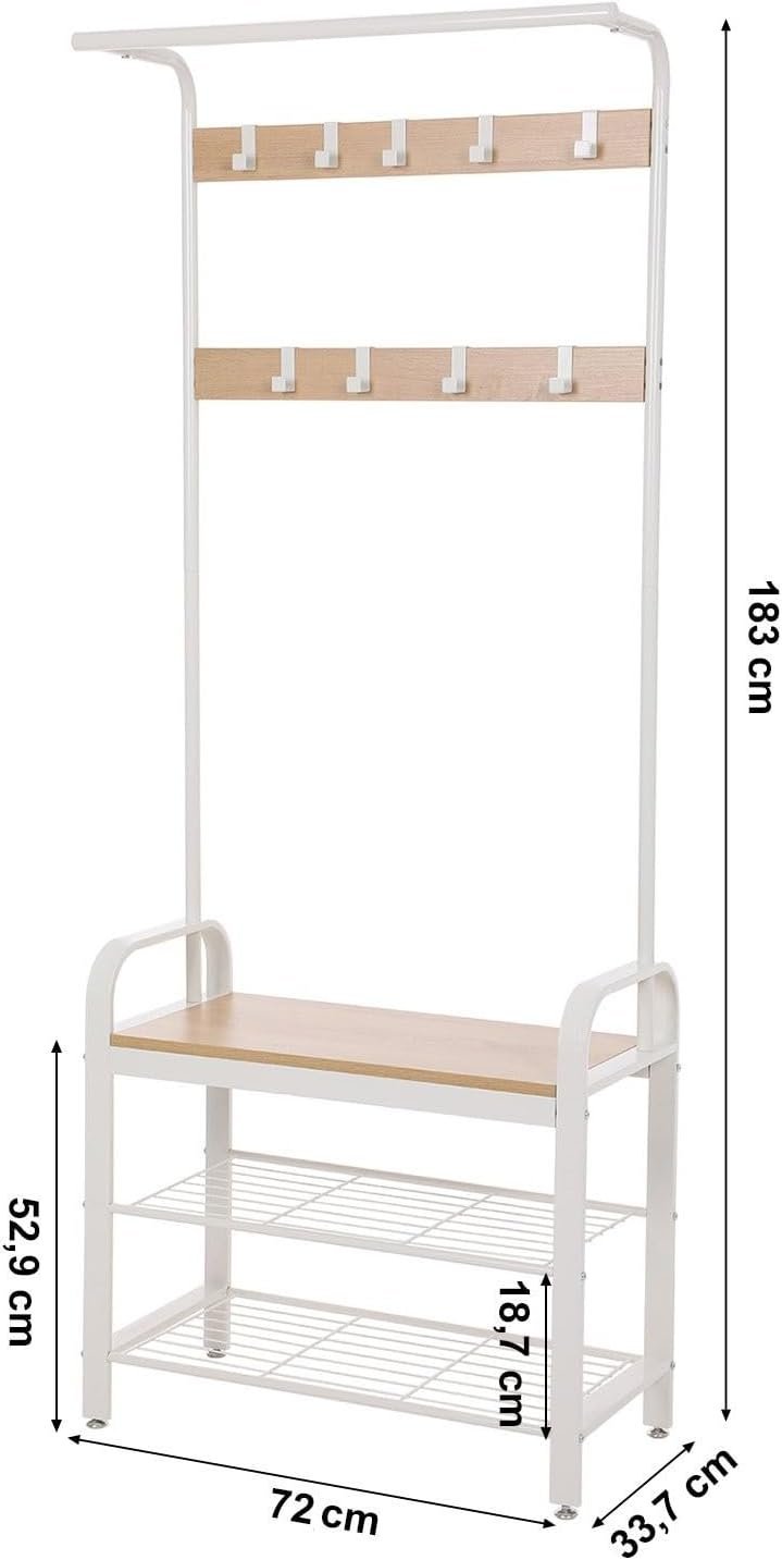 Specification: VASAGLE Cuier pentru haine cu banca de depozitare a pantofilor, cu 9 carlige detasabile, o sina pentru haine, 34x72x183 cm, modern, stejar si crem