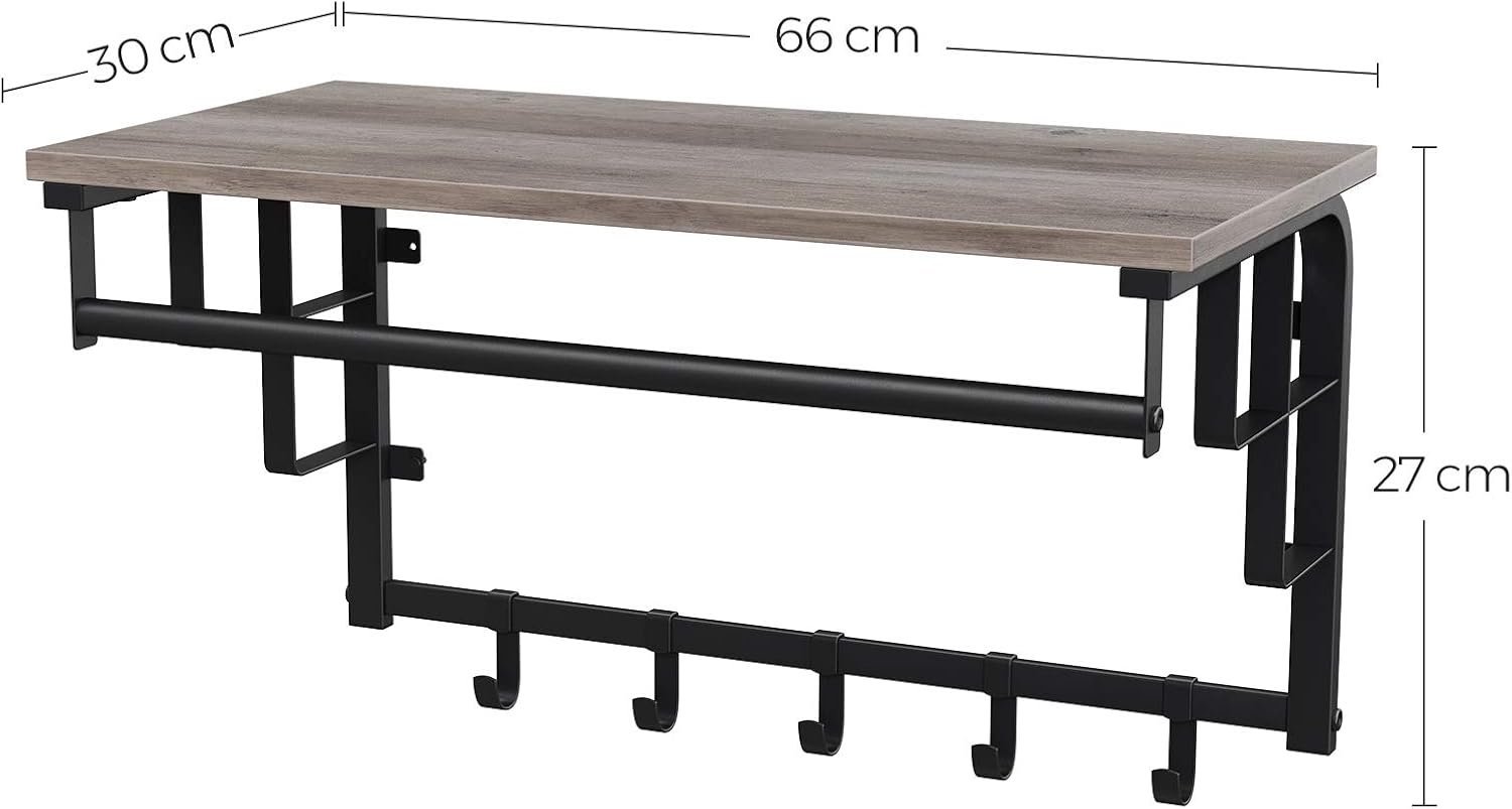 Specification: VASAGLE Cuier perete cu polita, bara si 5 carlige, 66x27x30 cm, gri