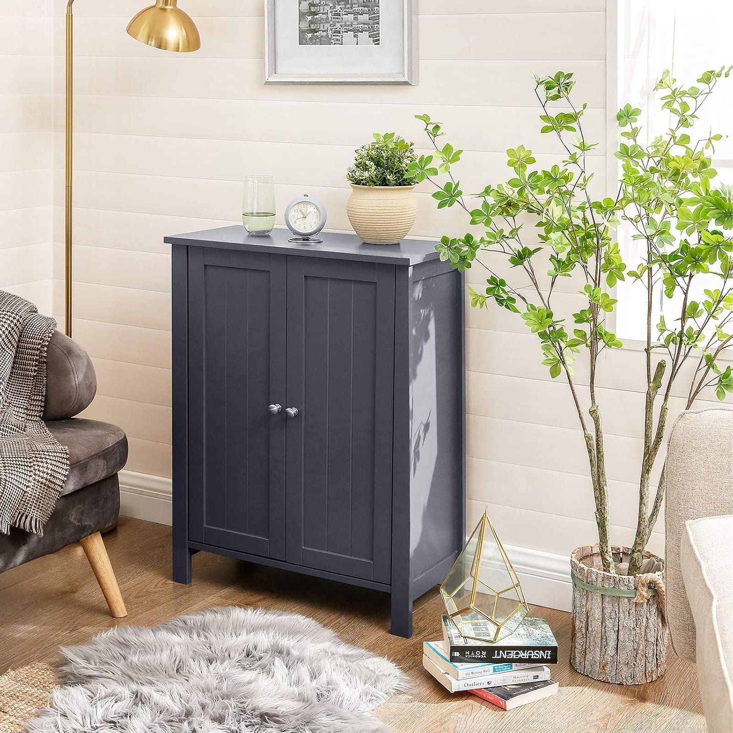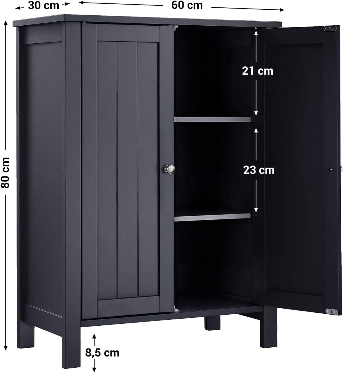 Specification: VASAGLE Dulap baie pe picioare cu 2 rafturi reglabile, din MDF, 30x60x80 cm, gri