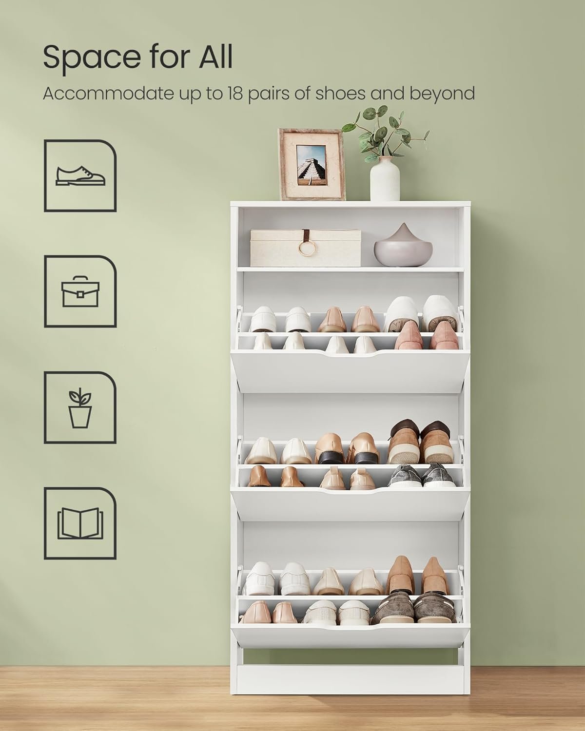 Specification: VASAGLE Dulap pantofi cu 3 usi rabatabile, pentru 14-18 perechi, 60x24x130 cm, alb