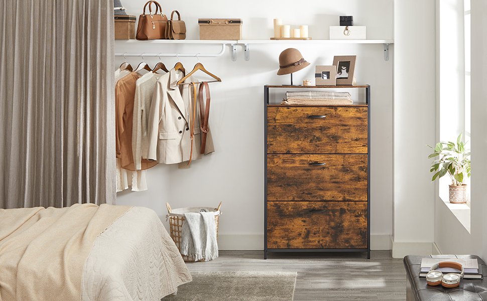 VASAGLE Dulap pantofi din MDF cu 3 usi basculante, pentru 15-24 perechi, 80x30x130cm, maro rustic