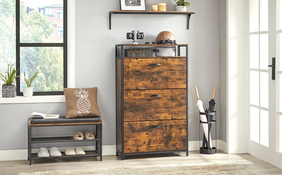 Specification: VASAGLE Dulap pantofi din MDF cu 3 usi basculante, pentru 15-24 perechi, 80x30x130cm, maro rustic