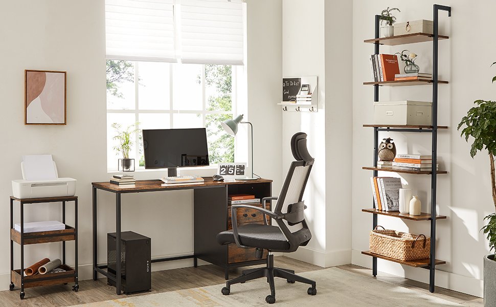 VASAGLE Etajera tip scara 6 rafturi, PAL si cadru metalic, 60x30x205 cm, maro rustic
