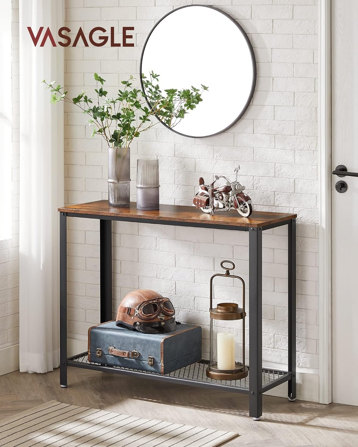 Be the first to review “VASAGLE Masa de intrare, cadru metalic cu blat din lemn, industrial, 102x35x80cm, maro rustic si negru”