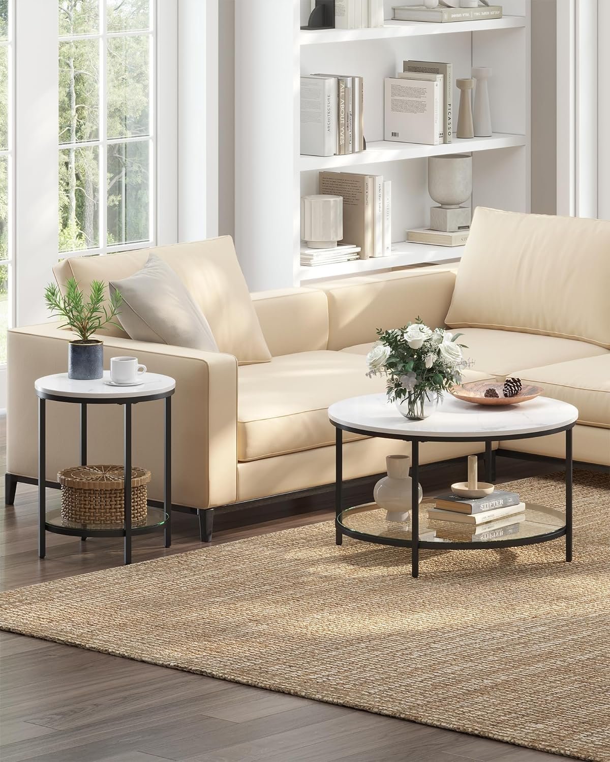 Be the first to review “VASAGLE Masa rotunda, cu cadru de otel, noptiera, 45x55cm, negru cu blat alb aspect marmura”