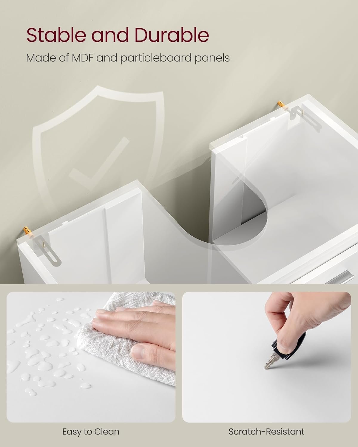Specification: VASAGLE Masca chiuveta baie, lavoar cu 2 usi si raft interior reglabil, MDF si PAL, 60x30x60 cm, alb