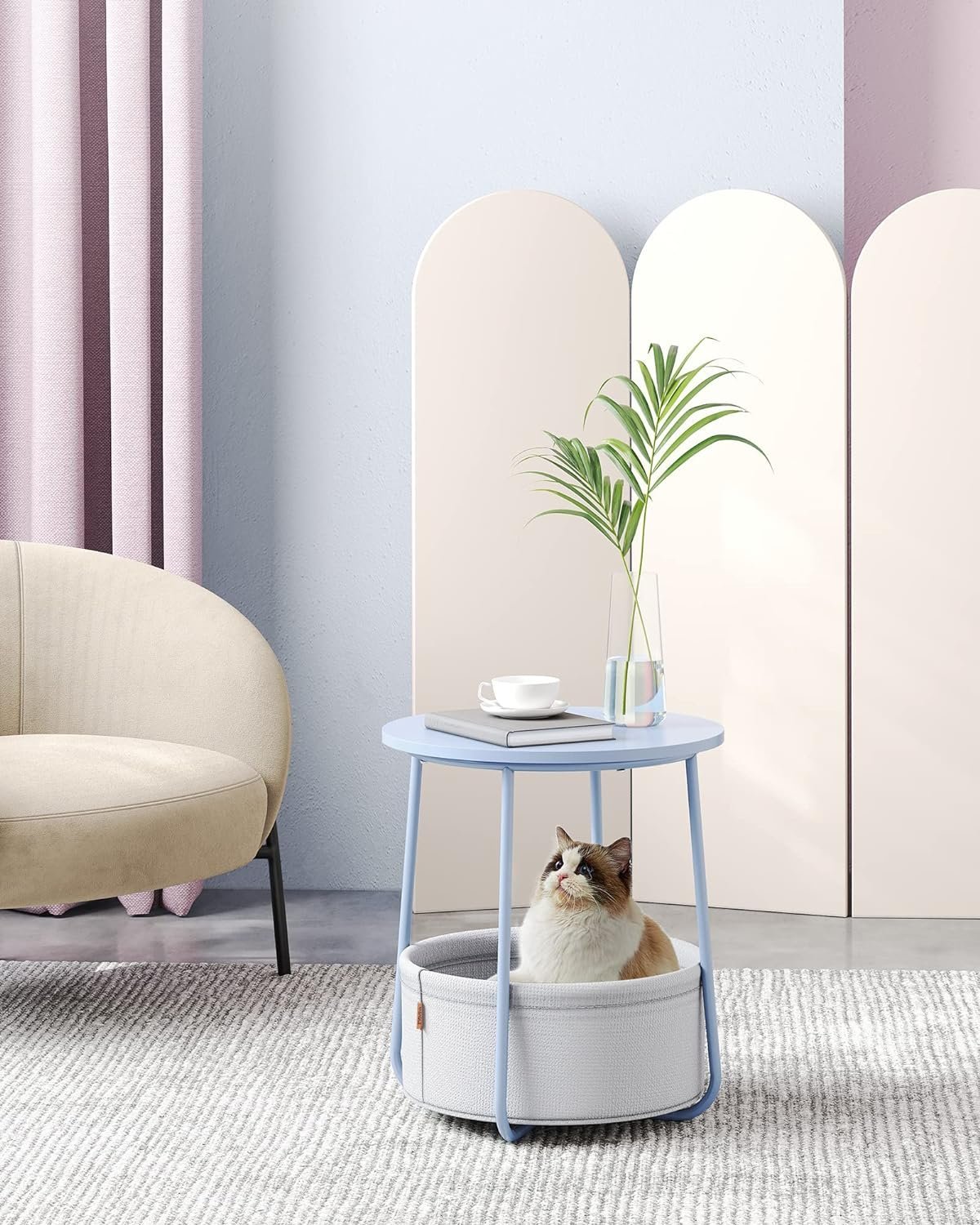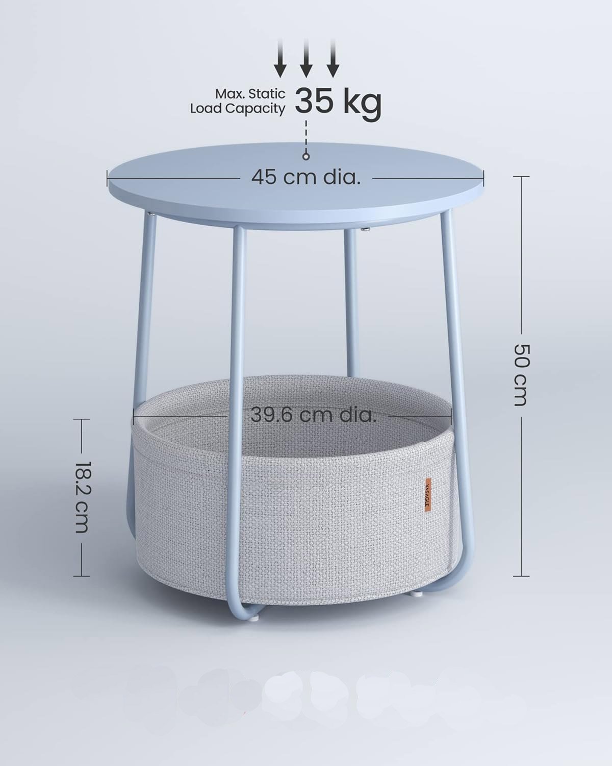 Specification: VASAGLE Masuta de cafea rotunda cu cos de stofa, stil modern, 45x50cm, albastru