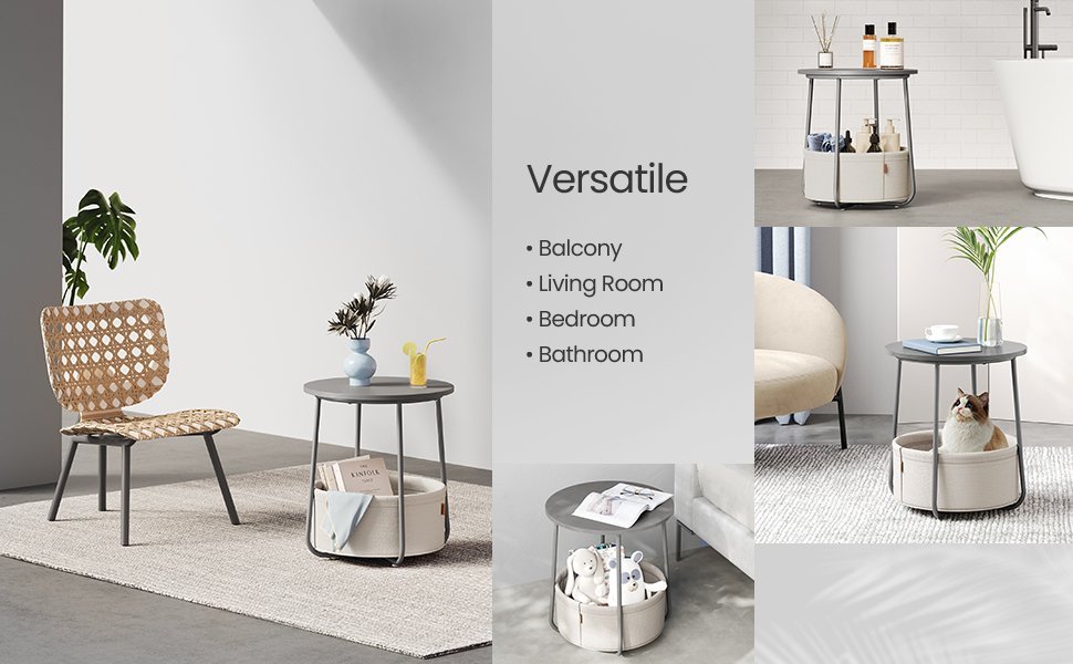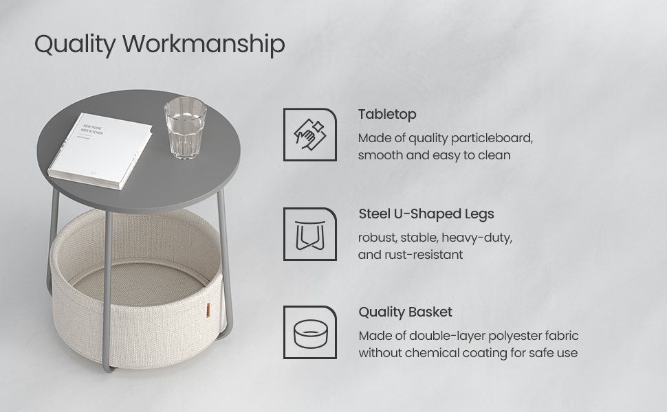 Specification: VASAGLE Masuta de cafea rotunda cu cos de stofa, stil modern, 45x50cm, gri