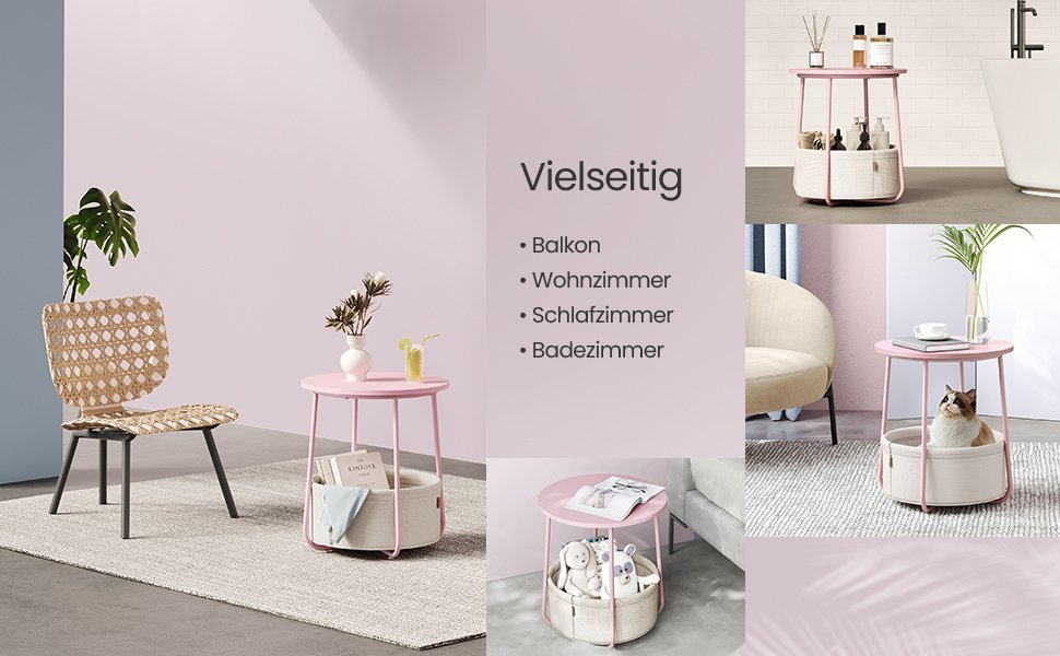 Specification: VASAGLE Masuta de cafea rotunda cu cos de stofa, stil modern, 45x50cm, roz cu bej