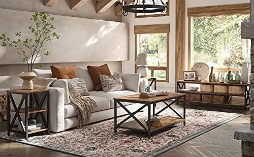 VASAGLE Noptiera mica din metal cu design in forma de X, 2 rafturi de depozitare, stil industrial, 40x40x60cm, maro rustic