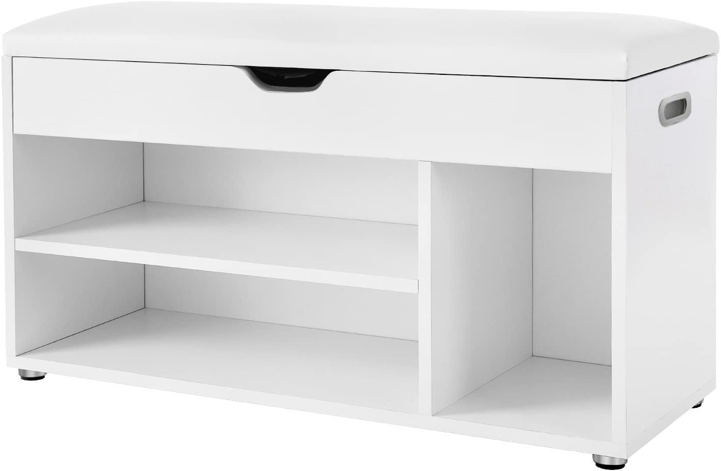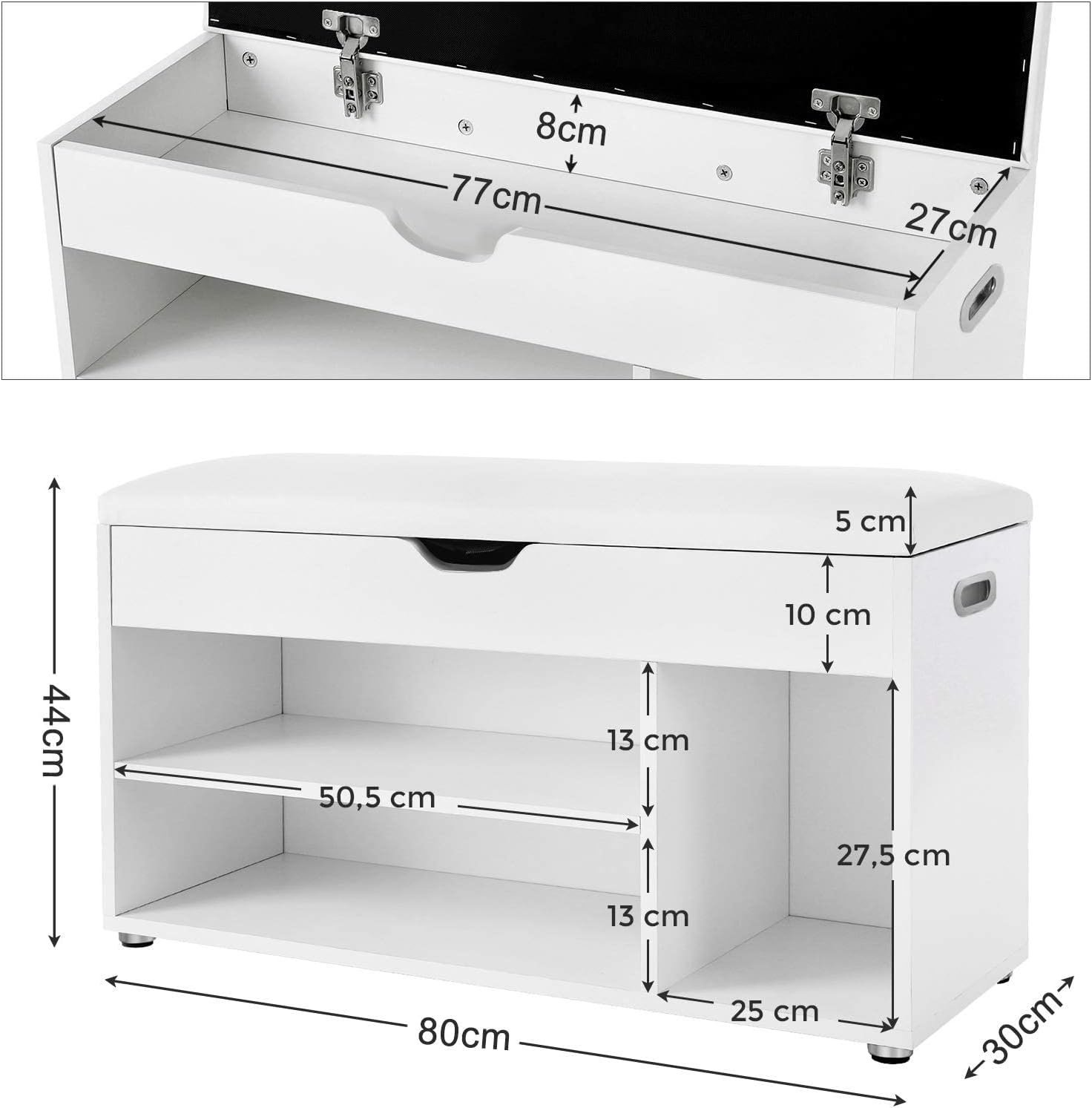 Specification: VASAGLE Pantofar cu banca, capitonata, 3 compartimente, sarcina 150 kg, 30x80x44cm, modern, alb