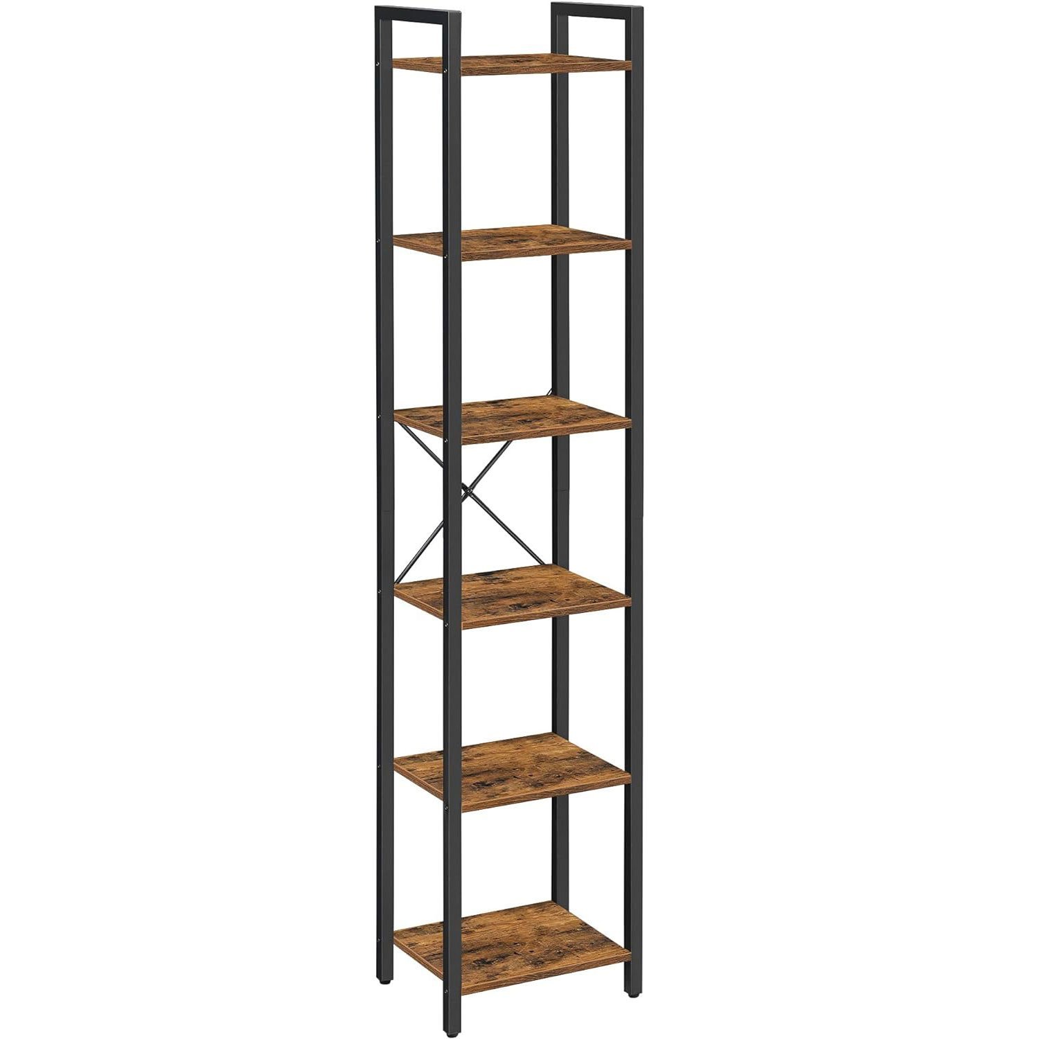 VASAGLE Raft cu 6 etaje, tip biblioteca, cadru metal si polite lemn, 30x40x187cm, industrial, maro rustic si negru