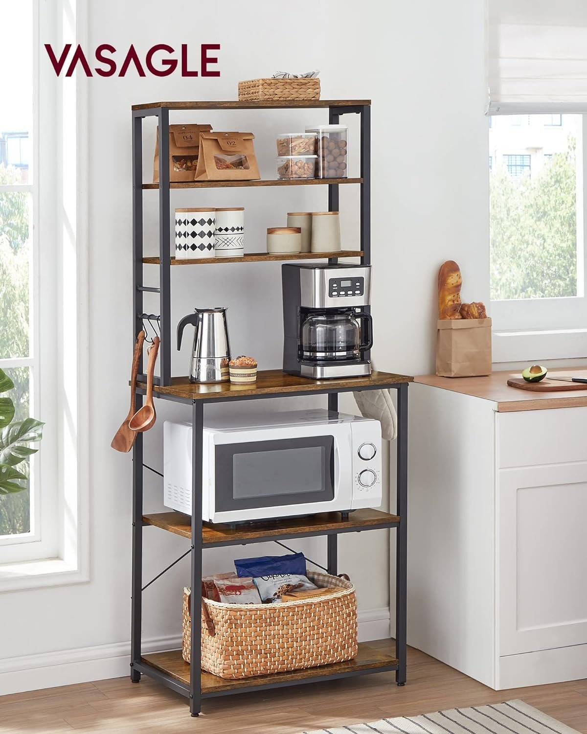 Specification: VASAGLE Raft de bucatarie, spatiu cuptor cu microunde, 6 rafturi, 40x60x167cm, maro rustic si negru