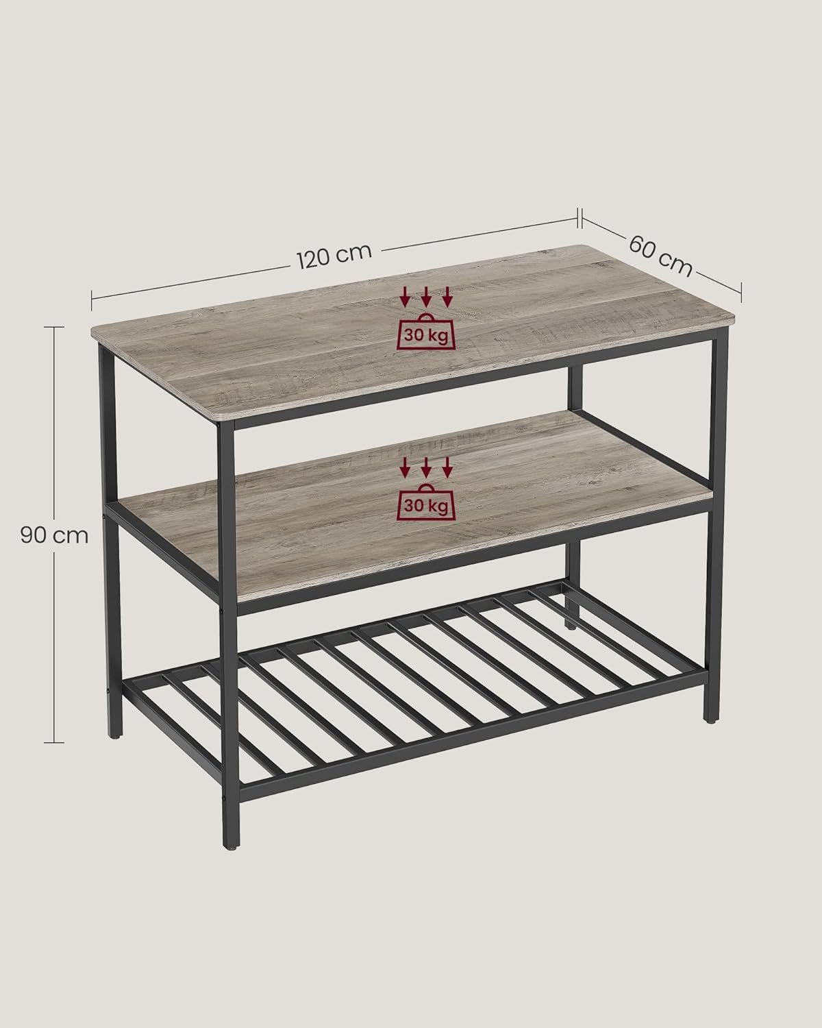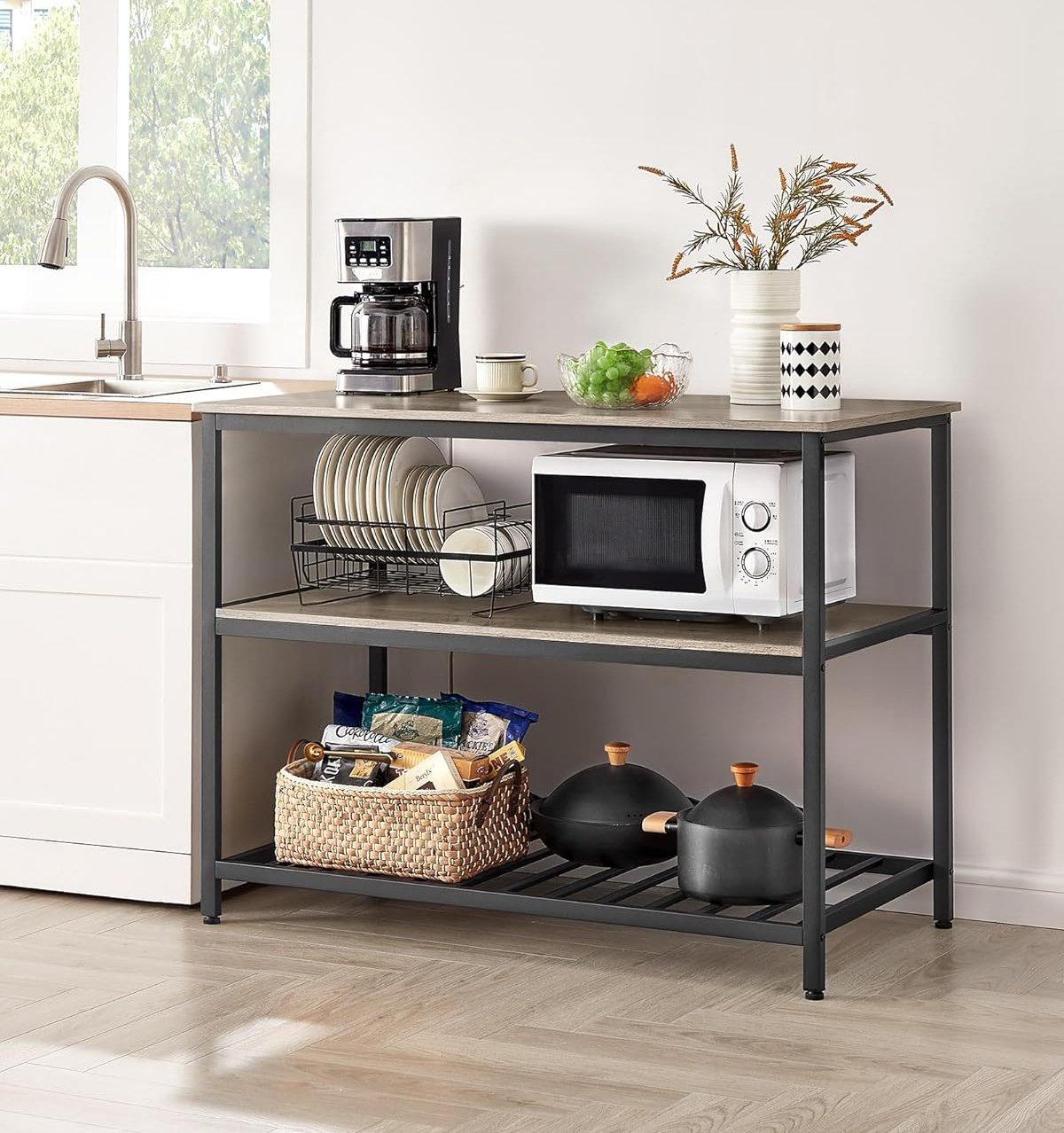 Specification: VASAGLE Raft de bucatarie tip insula, cadru de otel cu 3 nivele, stil industrial, 60x120x90cm, gri stejar