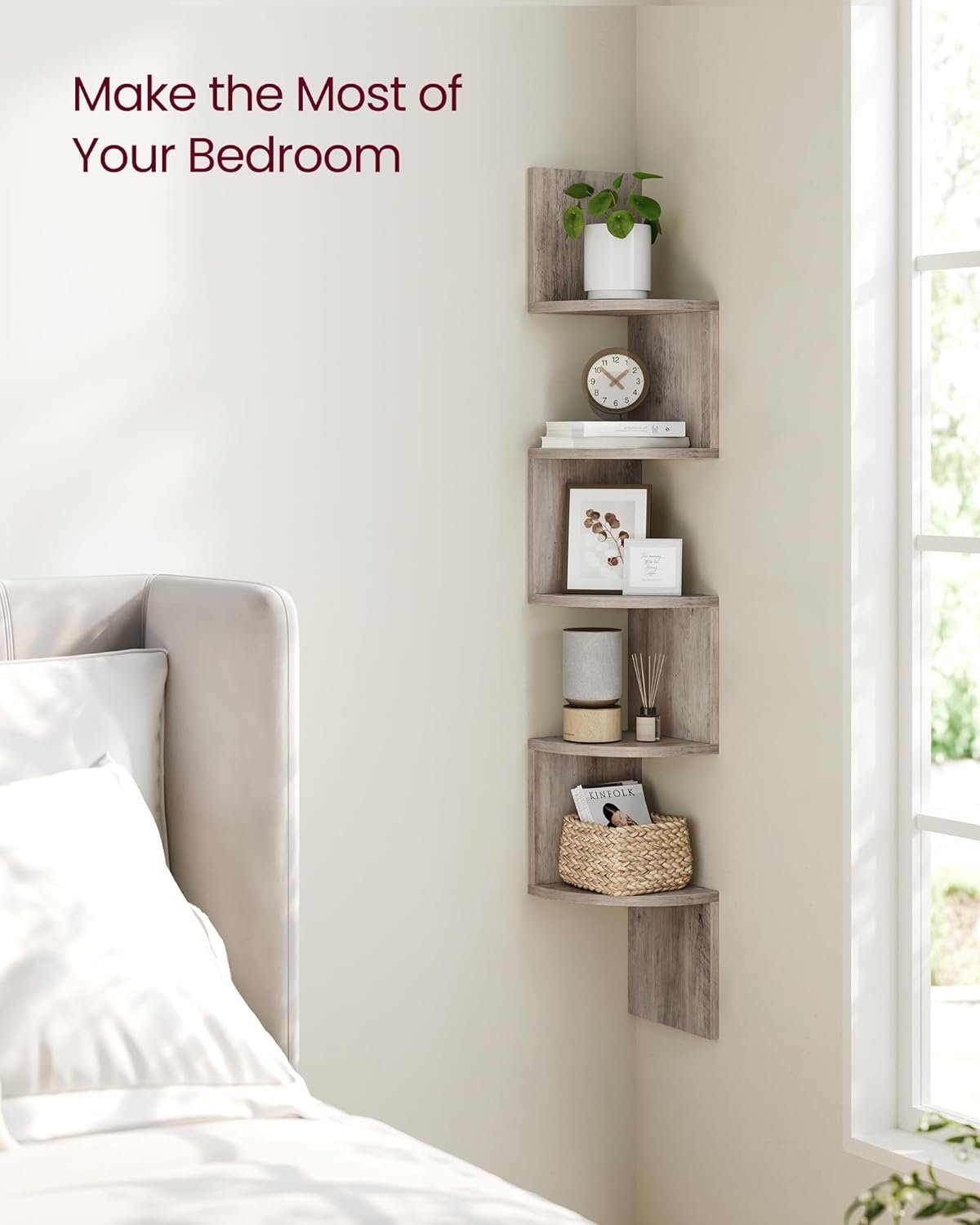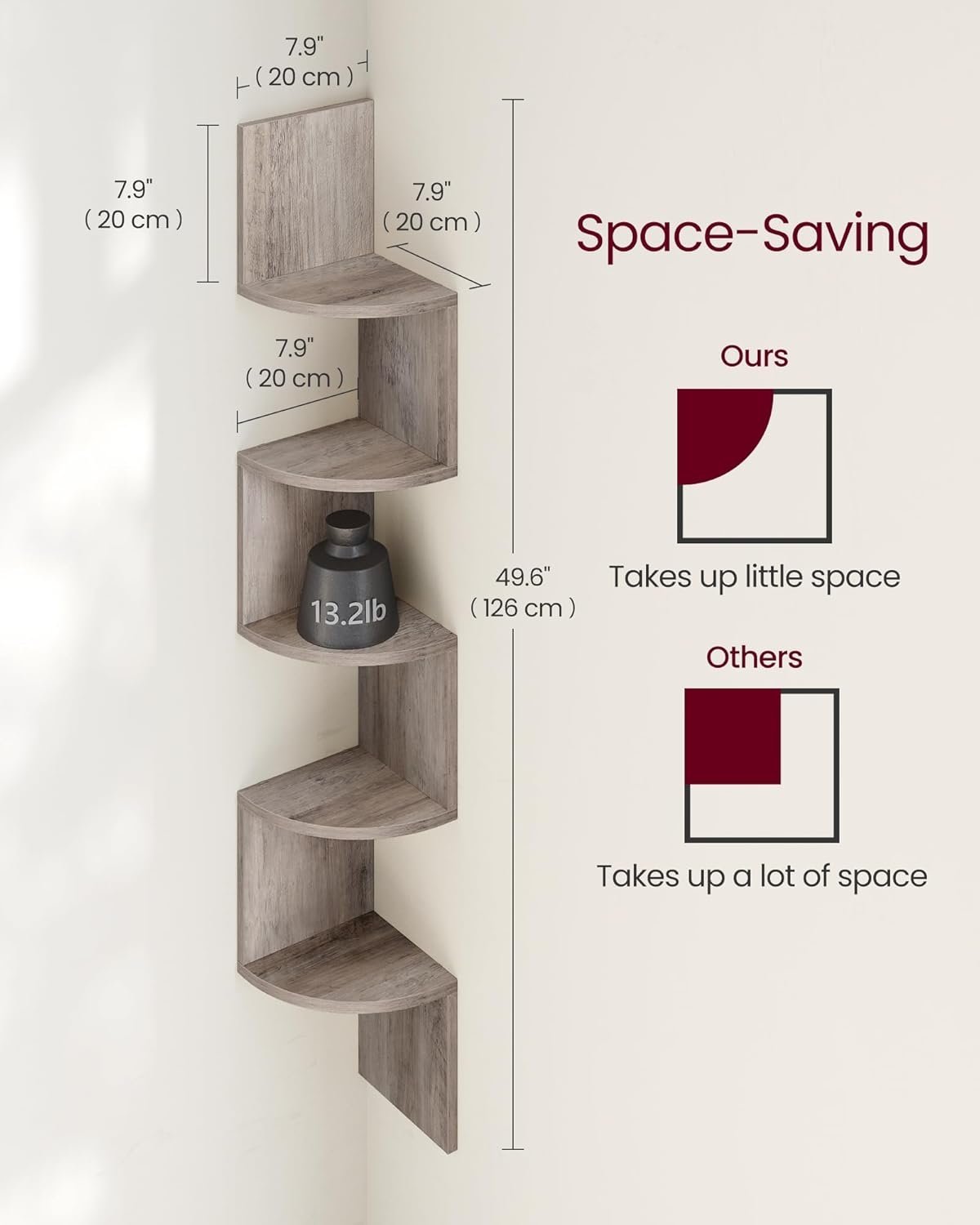 Specification: VASAGLE Raft de colt plutitor pe 5 niveluri, din lemn, 20x20x128cm, gri