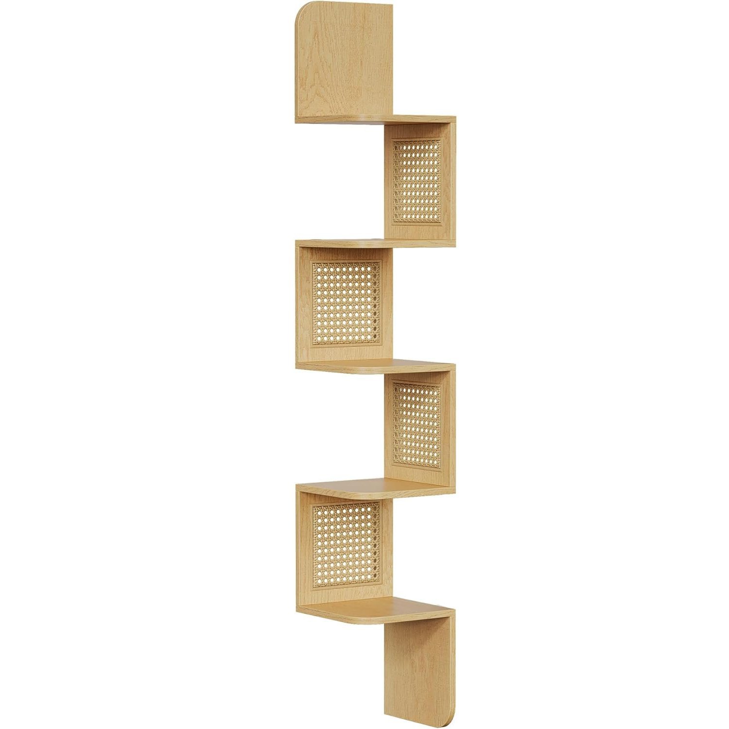 VASAGLE Raft de colt plutitor pe 5 niveluri, stil boho, 20x20x126 cm, bej