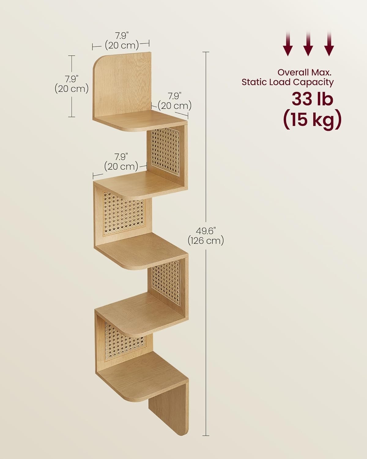 Specification: VASAGLE Raft de colt plutitor pe 5 niveluri, stil boho, 20x20x126 cm, bej