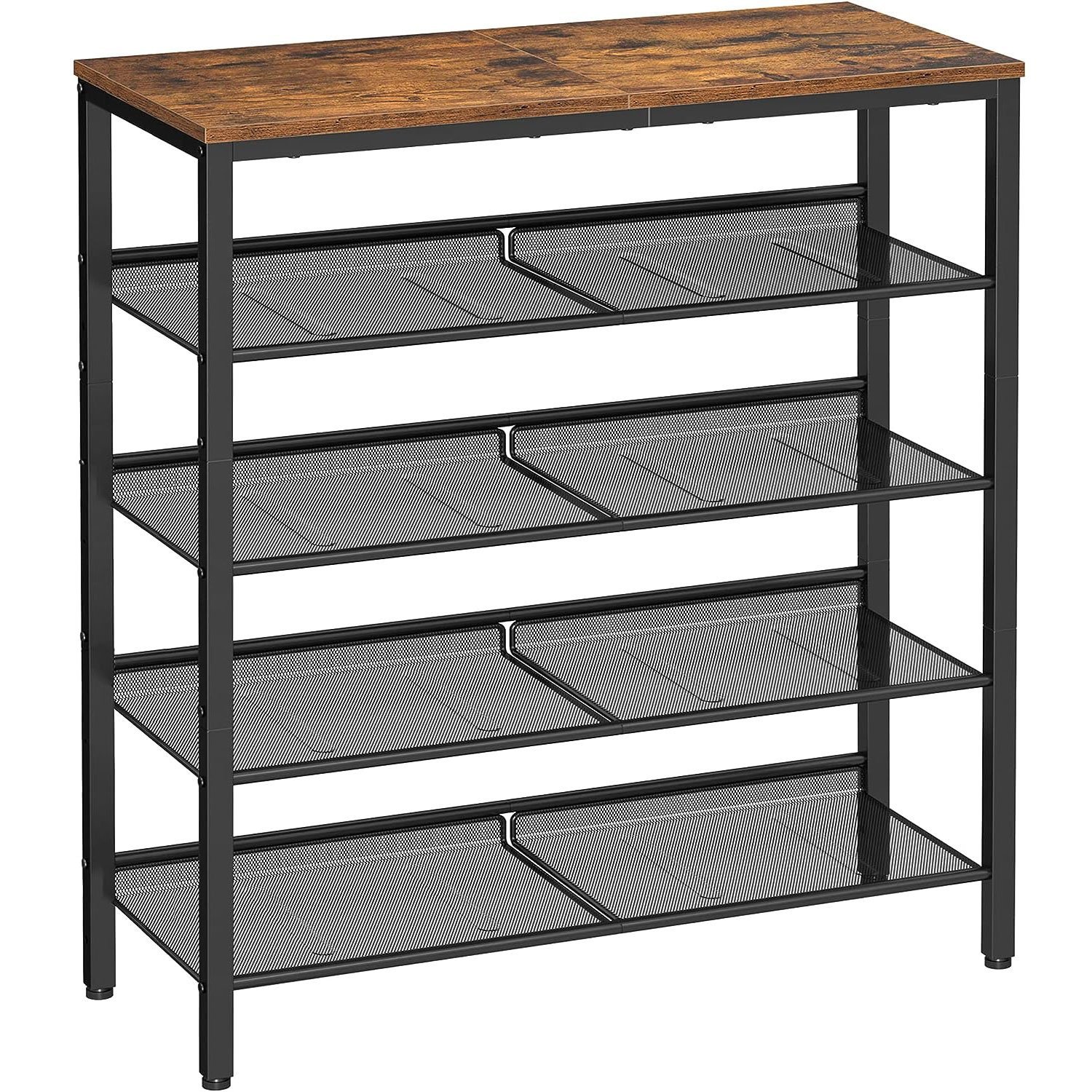 VASAGLE Raft de pantofi, 5 niveluri, rafturi reglabile din plasa, metal, stil industrial, 75x28x93cm, maro vintage negru