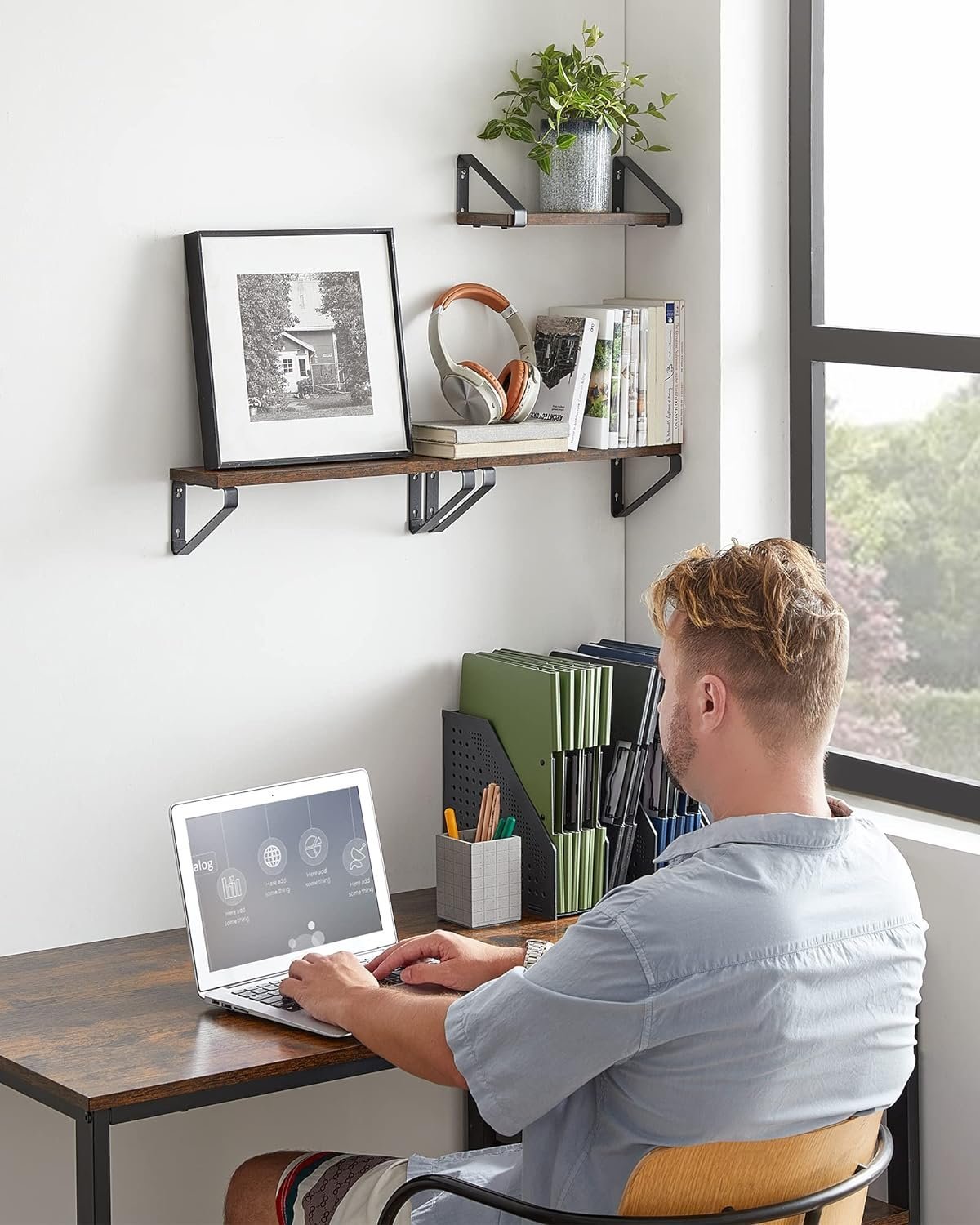 Specification: VASAGLE Raft de perete, set 3 bucati 30cm, 35cm si 40cm, 2 moduri de montare, maro rustic si negru