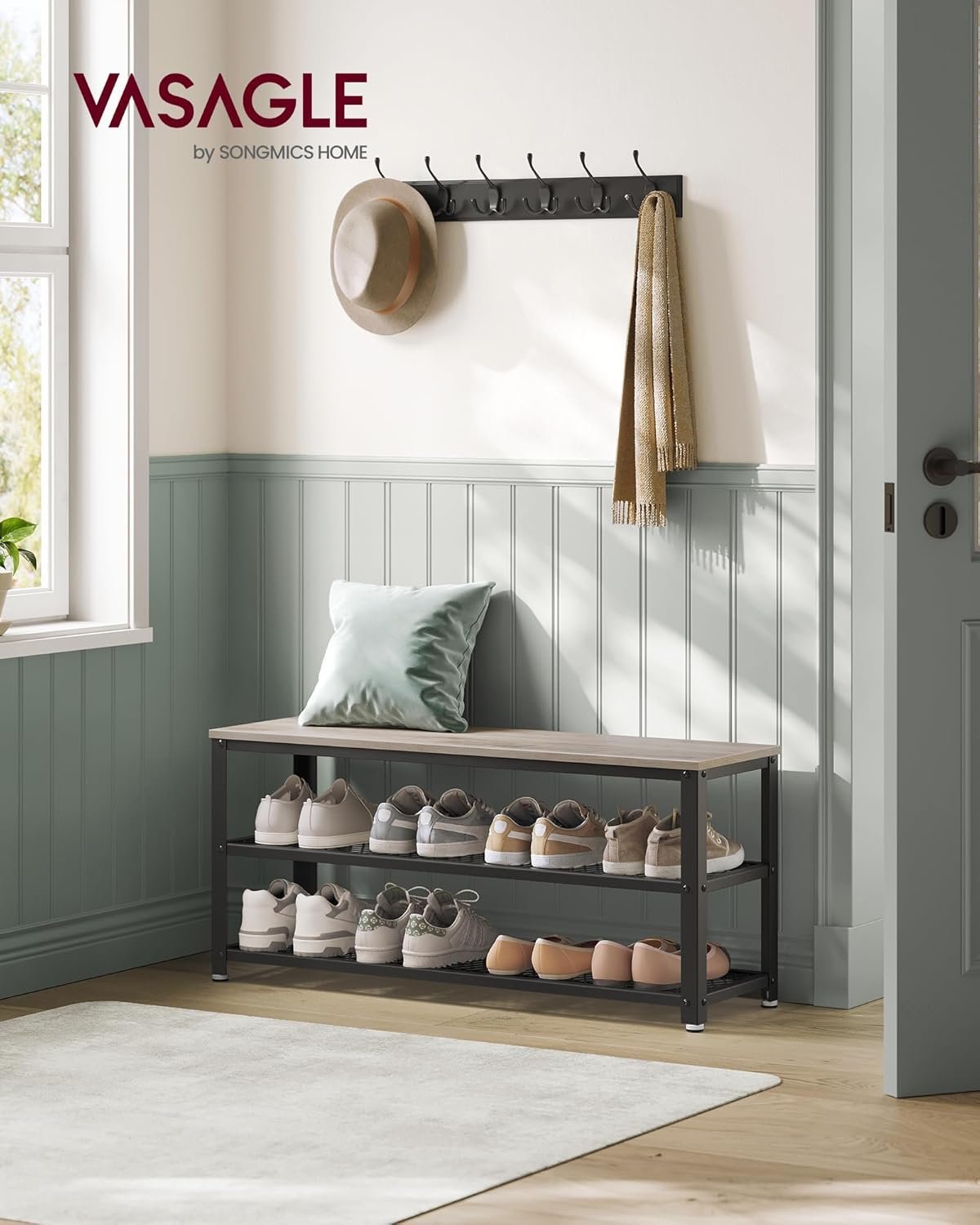 VASAGLE Raft pentru pantofi cu 2 polite, 100x30x45cm, otel, stil industrial, gri