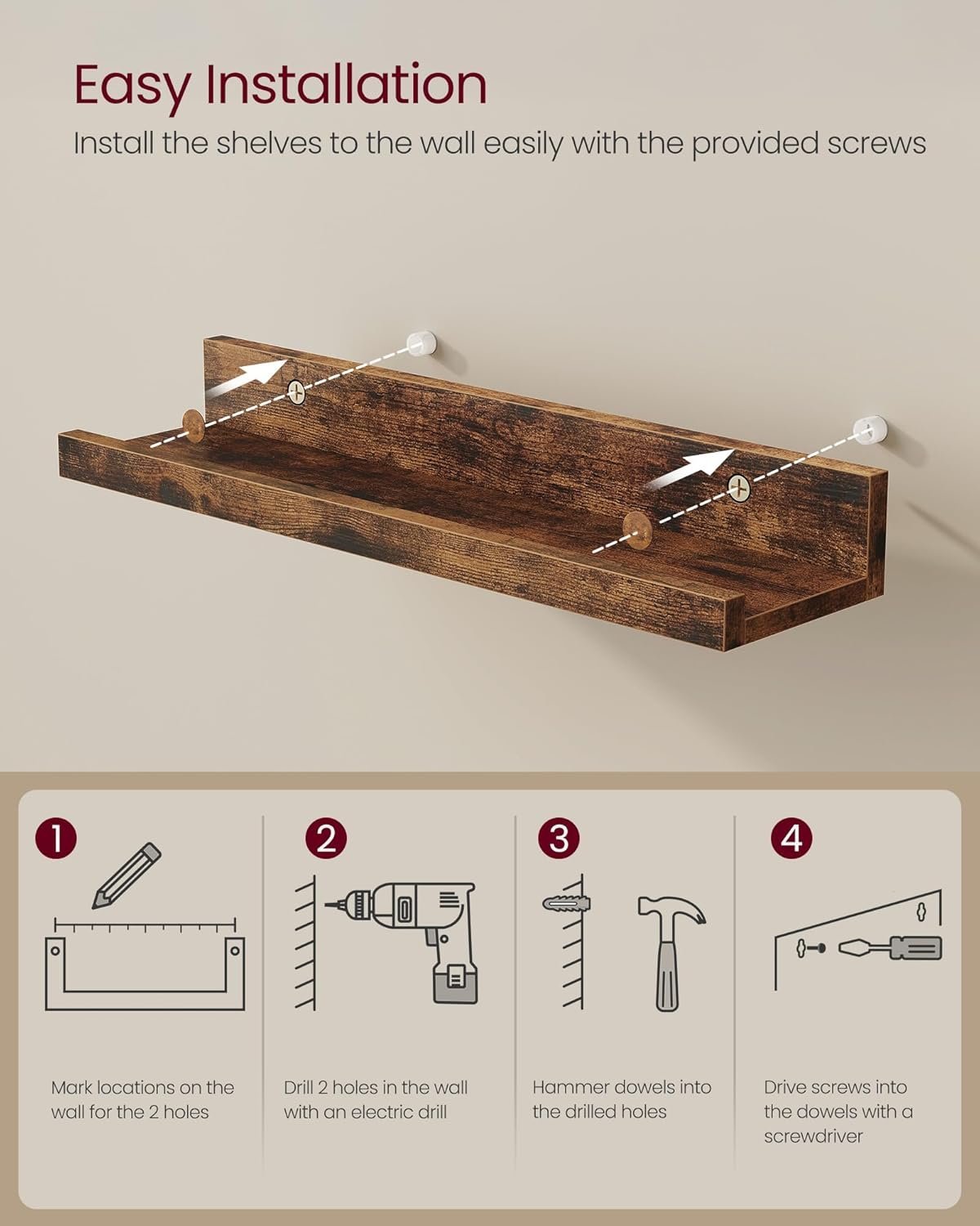 Be the first to review “VASAGLE Set 3 rafturi suspendate plutitoare, cu margine frontala inaltata, 38x10x5 cm, maro rustic”