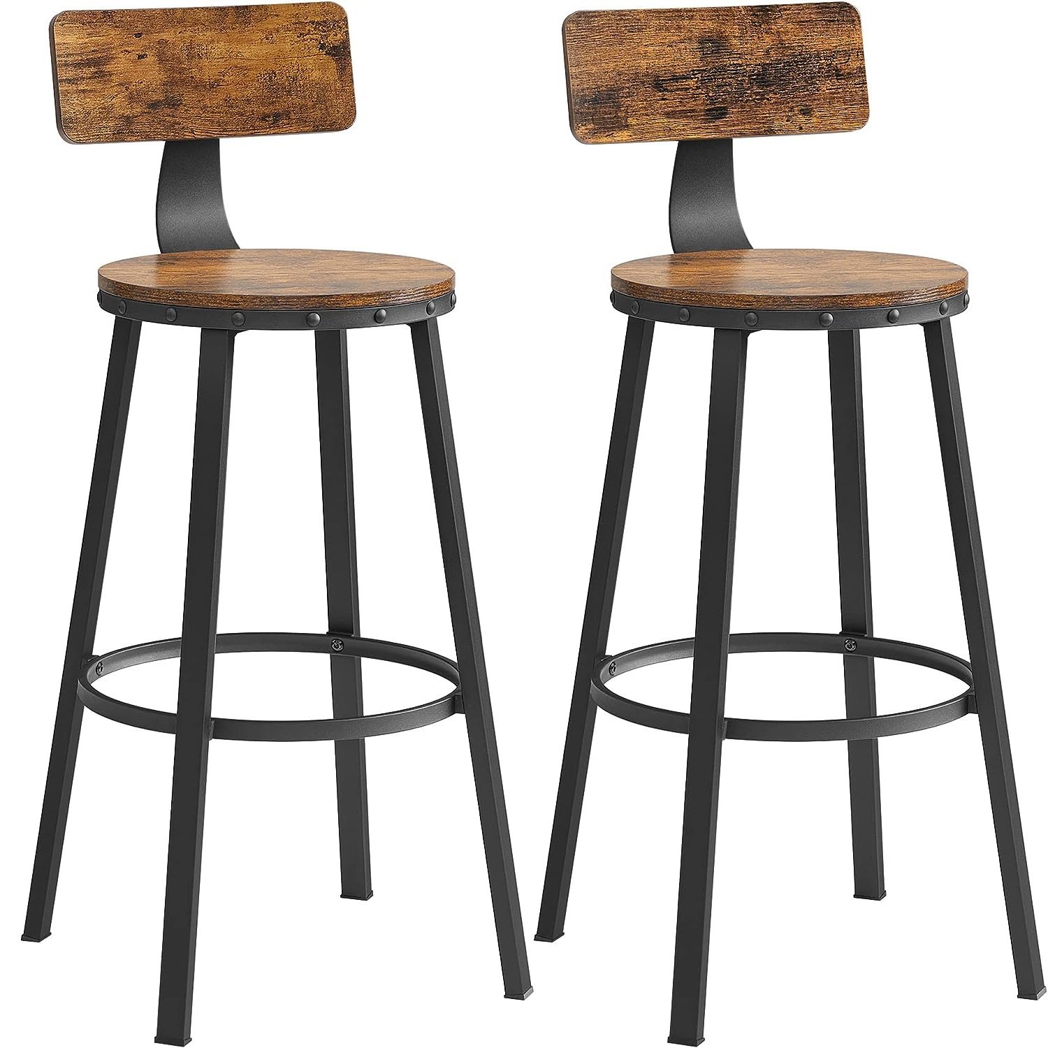 VASAGLE Set de 2 scaune de bar inalte cu spatar, cadru din otel, industrial, 54x99cm, maro rustic