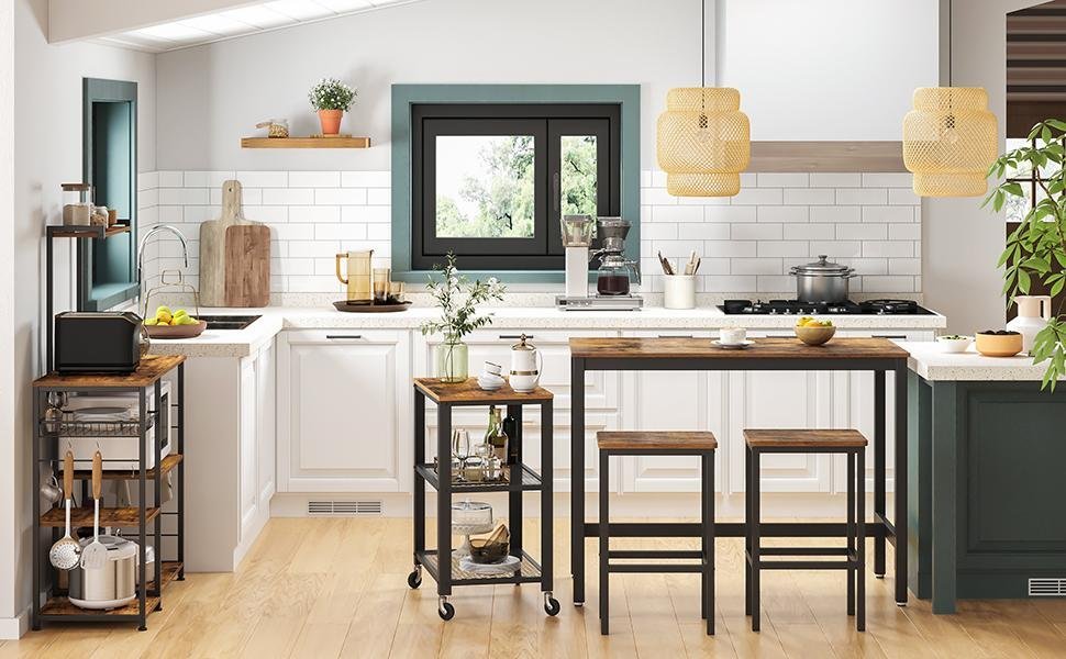 Specification: VASAGLE Set masa de bar cu 2 scaune, cadru din otel, blat lemn, stil industrial, 120x60x90cm, maro rustic